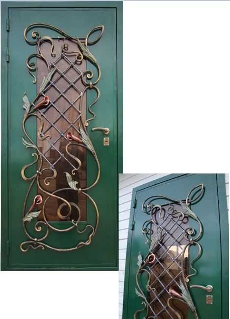 Вариант второй. Металлическая дверь с окном и элементами холодной ковки
