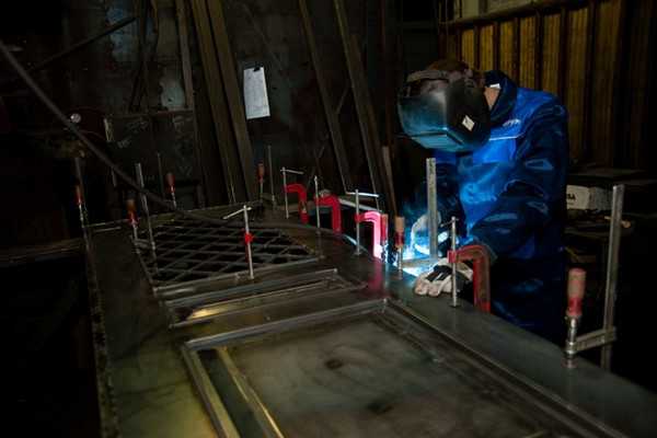 На этапе подготовки деталей, конструкция металлических дверей чертеж которой вычерчивается в масштабе, прорисовывается в виде отдельных рисунков — проработка касается того как будут крепиться детали и какая будет последовательность работ. Детализация чертежей дает возможность минимизировать ошибки и отходы при резке металла.Сборка дверного блока