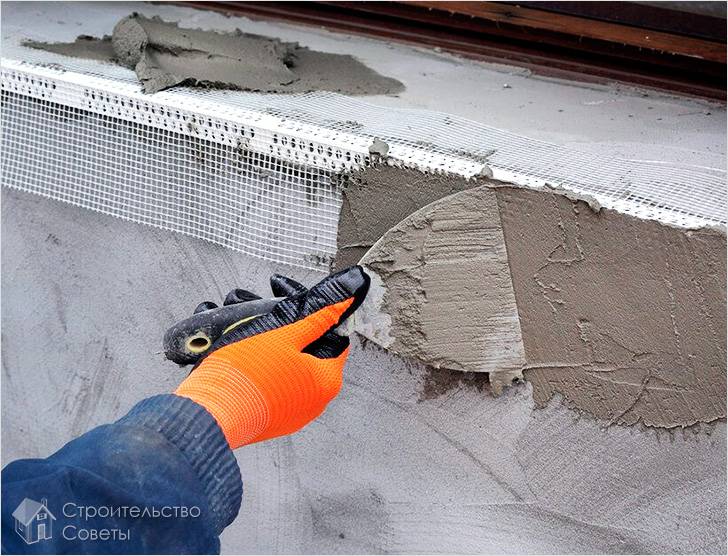 Итак, в смесь добавляете песок с расчета ½. Это в том случае, если вам предстоит сделать слой более 3 см. При этом песок должен быть просеянным. Что касается наружных оконных откосов, то их нужно обработать цементной смесью или же стартовой фасадной шпаклевкой. При этом в ее составе должны быть водоотталкивающий состав.