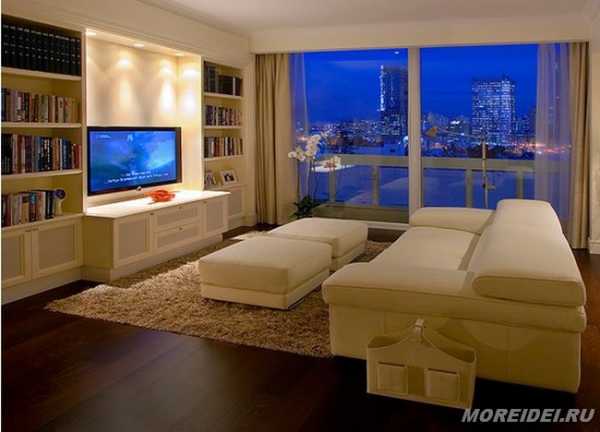 Так как плазменные телевизоры вешают чаще всего на стену, и какими бы тонкими они не были, на несколько сантиметров техника все равно будет выдаваться наружу. Ниша позволяет не только удобно разместить телевизор, но и визуально расширить помещение.