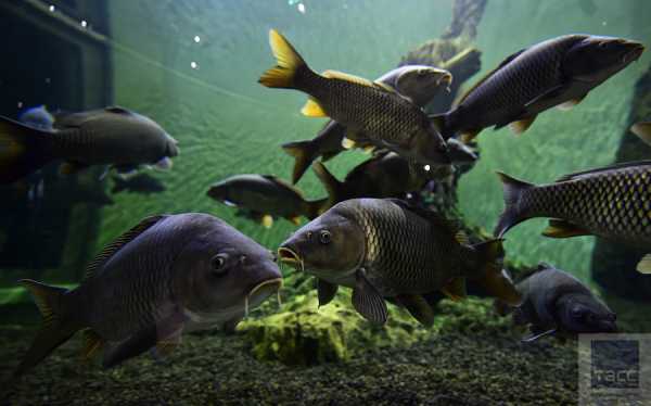 Декоративные рыбы в аквариуме главного здания Приморского океанариума Дальневосточного отделения Российской академии наук на острове Русский. Эти рыбы будут жить в открытых водоемах вне здания океанариума.