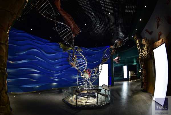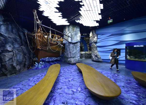 Интерьеры в главном здании Приморского океанариума Дальневосточного отделения Российской академии наук на острове Русский. Для гостей в океанариуме открыто два уровня.