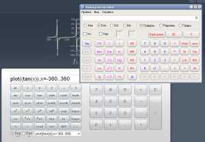 Как Вы, наши уважаемые читатели и читательницы, уже могли догадаться, речь пойдет об онлайн калькуляторах, если быть точнее — об одном из самых полезных и, частенько, незаменимых изобретений человека, которое не так давно перекочевало в интернет. Мы долго выбирали роль самого классного, удобного и полезного онлайн калькулятора и выбор пал на молодой вебдванольный сервис — Web20calc. Вы, наверное, уже успели возмутиться относительно важности этой темы? Честно говоря, это Вы зря — калькулятор Windows ему совсем не ровня, а ближайшие соперники — типа eCalc, может и превосходят его в функционале, но стоят от 45 евро за копию и при этом устанавливаются на ПК или нетбук или Iphone, что нам не так и нужно.Данный онлайн калькулятор может: Но самое главное — данный онлайн калькулятор умеет строить графики!!! Если не верите, смотрим на скриншот: Для построения графиков, сервис использует специальную кнопку (график серый нарисован) или буквенное представление этой функции (Plot). Чтобы построить график в онлайн калькуляторе, достаточно записать функцию, например такую как у нас в скриншоте: plot(tan(x)),x=-360..360 Мы взяли самый простой график для тангенса, и после запятой указали диапазон переменной X от -360 до 360. Построить можно абсолютно любую функцию, с любым количеством переменных, например такую: plot(cos(x)/3z, x=-180..360,z=4) или ещё более сложную, какую сможете придумать. Обращаем внимание на поведение переменной X — указан промежуток от и до с помощью двух точек.Единственный минус (хотя трудно назвать это минусом) этого онлайн калькулятора это то, что он не умеет строить сферы и другие объёмные фигуры — только плоскость. Для сравнения с калькулятором Майкрософта, приводим наглядный скриншот Думаем игра «Найдите N отличий» Вам знакома. Теперь пора подвести некоторые итоги: С помощью онлайн калькулятора мы можем: Вполне добротный список преимуществ.Update 21.10.2011: Мы оформили более удобную страницу с примерами для эффективного использования калькулятором — посмотреть. Её можно открыть с любой точки нашего сайта.Update 02.12.2010: Теперь можно опробовать этот калькулятор в действии прямо у нас в журнале: UPDATE 09.04.2011: Функции арктангенса, арксинуса и т.д. запускаются кнопками:tan-1, sin-1 и т.д.Включить продвинутые функции для решения матриц, построения графиков, дифференциалов и другого можно с помощью специальных клавиш: Для полной функциональности нужно использовать оригинал, но этот тоже сойдет для быстрых рассчетов. Технический калькулятор | Онлайн калькулятор (⇒) itpride.net okcalc.com Перед вами лучший онлайн калькулятор, который можно использовать бесплатно и без регистрации. Данный онлайн калькулятор является одним из самых совершенных наших приложений. Он удобный, практичный и отличается высокой скоростью загрузки. Над разработкой этого приложения трудился целый коллектив. Калькулятор не требует установки и работает прямо в браузере. Онлайн калькулятор выполняет стандартные математические действия: сложение/вычитание, умножение/деление, вычисление процентов, нахождение квадратного корня и возведение в степень. Также, доступна функция памяти, с помощью которой можно запоминать промежуточные результаты и выполнять многоступенчатые расчеты. Калькулятор представляет собой браузерное приложение, которое можно использовать в режиме онлайн бесплатно и без регистрации. Он расчитан н
