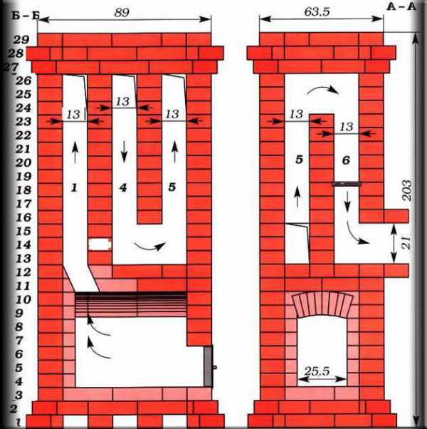 5. Первоначально печи строились с глухой топкой, но позднее в их конструкцию добавили поддувало, дверку и колосники. Это дало возможность избавиться от свода в топке, а кладку печей теперь могли выполнять каменщики с любой квалификацией.