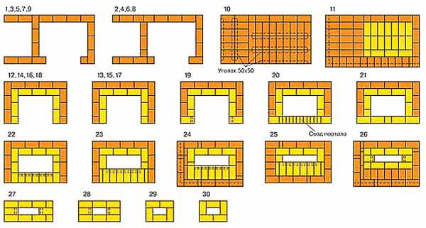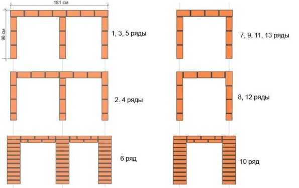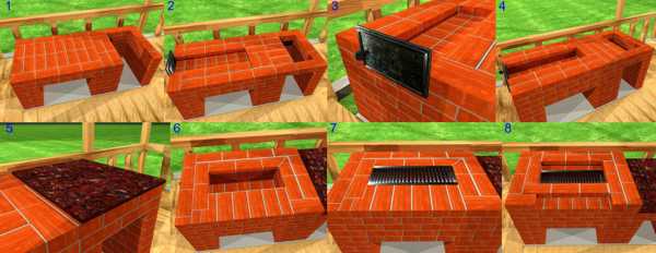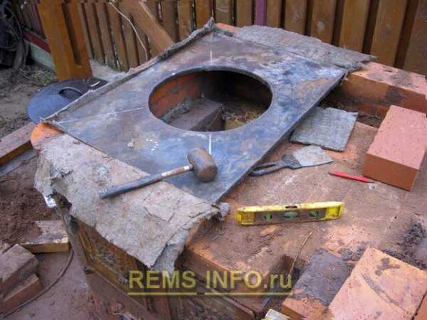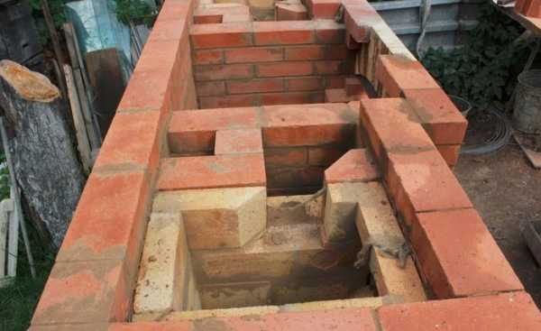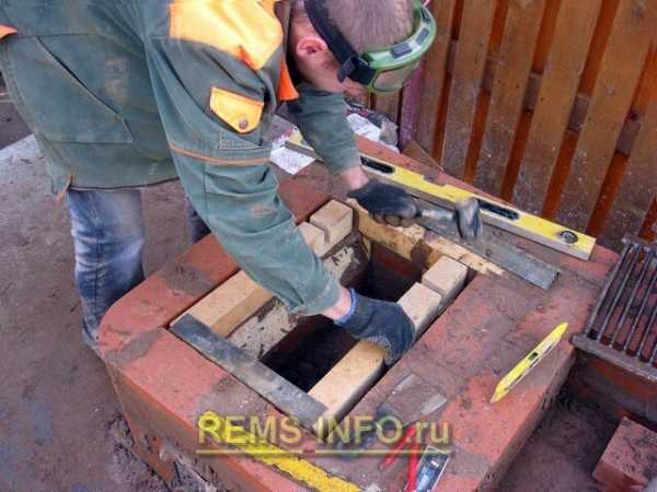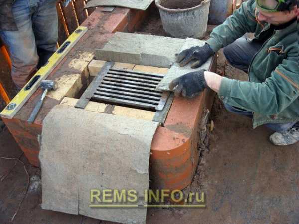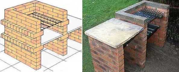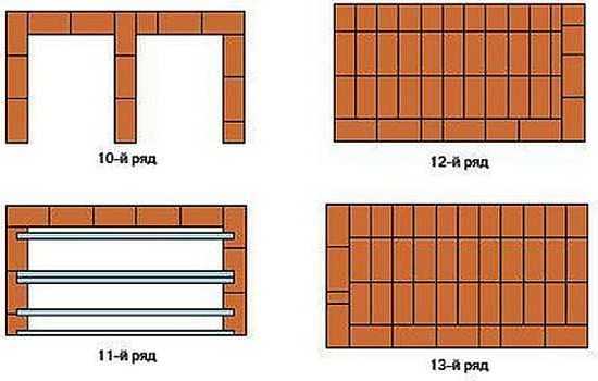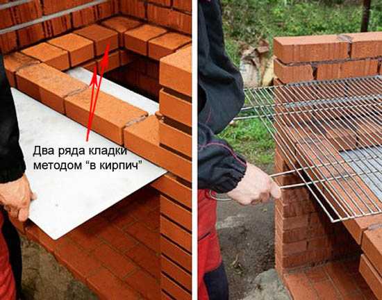 Чтобы уложить кирпич, воспользуйтесь уголками, на которые выложите кирпичи перекрытия. По внешней стороне сделайте ряд из кирпича, поставленного на длинное ребро. Можно сделать два перекрытия, верхнее снабдить зольными решетками. В общем – фантазировать можно до бесконечности, приводя к идеалу свое детище. Как на фото.