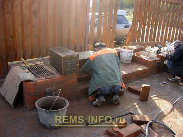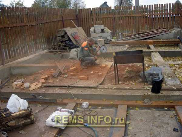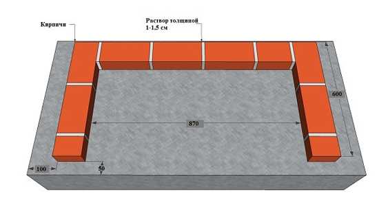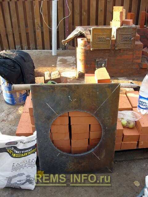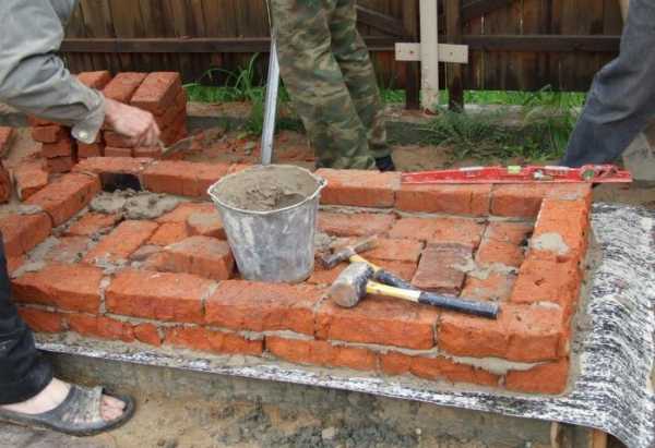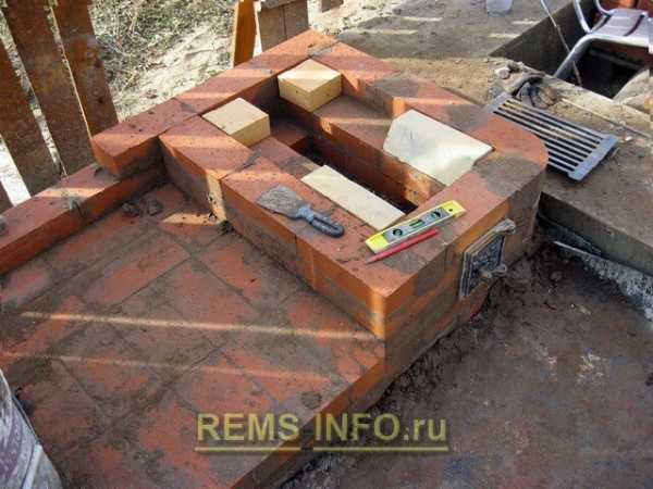 металлическим прутком. Создание подобной плиты-основы избавит от необходимости обустройства отдельного фундамента для печи. После того как плита-основа создана, на ее поверхности, с целью обеспечения условий гидроизоляции корпуса печи, нужно расстелить сложенный вдвое лист рубероида, после чего заняться кладкой.