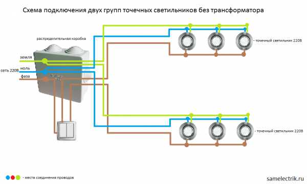 Подключение точечных светильников на 12 В с персональным трансформатором