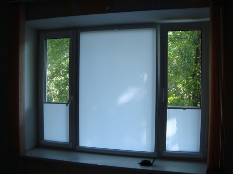Так же можно на створку пластикового окна, используя систему рулонных штор снизу-вверх установить еще один короб с рулоном ткани других свойств. На видео ниже это показано. В таком случае мы получим систему рулонных штор День ночь.