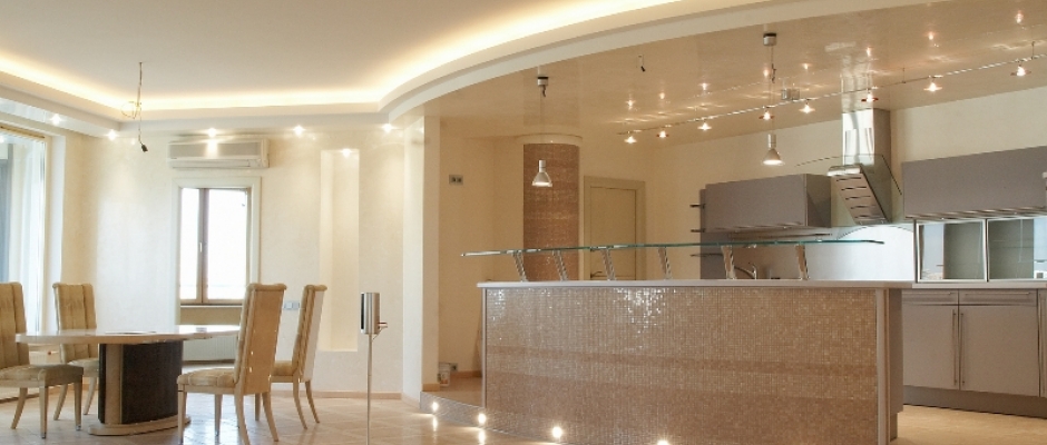 vopros-remont.ru Рано или поздно любой современный человек ловит себя на мысли о том, что ему приелся собственный дом или квартира. При этом все может быть в полном порядке – удобная, новая мебель, нормальная планировка. Но главное – совершенно отсутствует ощущение комфорта и желание проводить дома свободное от дел время. Если вы, прочитав вышеприведенные строки, узнали себя, настройтесь на переоборудование своего жилища. Существуют тысячи оригинальных вариаций на тему привнесения в дом уюта. Давайте рассмотрим одну из них. Имя ей – потолочная подсветка. Сконструировать потолочную подсветку своими руками сумеет каждый, кто в курсе, как пользоваться молотком. Если у вас есть хотя бы минимальные навыки в строительной области, смело начинайте планировать свои действия. Оглушительный успех такая идея заслужит у ваших детей, ведь свет в потолочной нише смотрится весьма таинственно и загадочно, наполняя комнату как раз тем очарованием, которого ей так не хватало. Совершив первый шаг к переменам – твердо решив менять обстановку – не забудьте составить себе подробный список действий и инструментария, который пригодится в работе. Если вы новичок в мероприятиях такого масштаба, просмотрите в Интернете соответствующие материалы, так как в любой работе много своих нюансов, мелких и не слишком. Вернуться к содержанию Потолки встречаются двух разновидностей: в один или несколько уровней. Имели ли вы раньше дело с конструированием потолочных ниш? Если да, то должны быть в курсе, что при монтировании подвесного потолка и подсветки «съедается» какое-то расстояние. В результате потолок будет выглядеть ниже. Рекомендуется заниматься таким мероприятием в помещении, где высота стен достаточно велика. В таких условиях вас и ваше воображение ничто не станет стеснять. Если вы – владелец не слишком большого жилого пространства, такой вариант будет оптимальным. Лаконичное грамотное оформление смотрится ничуть не менее привлекательно, чем сложные конструкции, воплощенные на потолках огромной комнаты. Вернуться к содержанию Не играет большой роли, кто будет выполнять задачу – вы или нанятая вами профессиональная бригада — при должной аккуратности вы реализуете то, что хотите. Остается выбрать наиболее подходящую технологию. Вряд ли сегодня найдется более распространенный способ подсветки потолка, чем светодиоды. С ними удобно работать, количества их оттенков хватит, чтобы удовлетворить любую дизайнерскую фантазию. Вы можете купить как отдельные светильники, так и бухту светодиодной ленты. Именно с использованием светодиодов получается такой эффект, как звездное небо. В список достоинств включается незаметность – ленту легко спрятать в потолочной нише, за счет клейкости основы. Можно не волноваться, если приходится часто проветривать комнату или если вы живете в жарком климате – светодиоды не боятся температурных перепадов. Принцип работы светодиодной подсветки показан в следующем видеоролике: Задолго до конца 20 века появился неон. В основном его можно было встретить в виде ярких вывесок на улице, в барах и ресторанах. В сегодняшнее время немного иная ситуация – неоновые трубки используют в оформлении домов, квартир и даже рабочих помещений. Конструирование такого освещения – задача интересная, но сложная. Если вы не совсем уверены в с