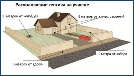 Загрузка... Расстояние от септика, схема по СНиП: до скважины или колодца, фундамента дома, границы участка