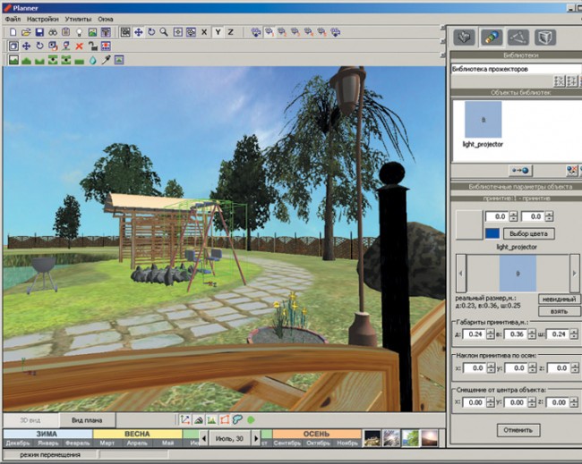 Это очень удобная функция именно для ландшафтного дизайнера - конечный результат работы в реальности растянут по времени, а в программе можно смоделировать будущее.