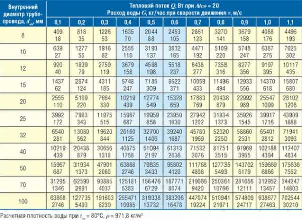 S-Площадь сечения м2π-3,14-константа - отношение длины окружности к ее диаметру.r-Радиус окружности, равный половине диаметраQ-расход воды м3/сD-Внутренний диаметр трубыV-Средняя скорость потока жидкости в трубе ( м/с )