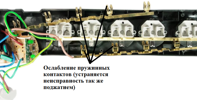 Если мы обнаруживаем такие общие шины, то можно просто подогнуть ослабший контакт соответствующей розетки.