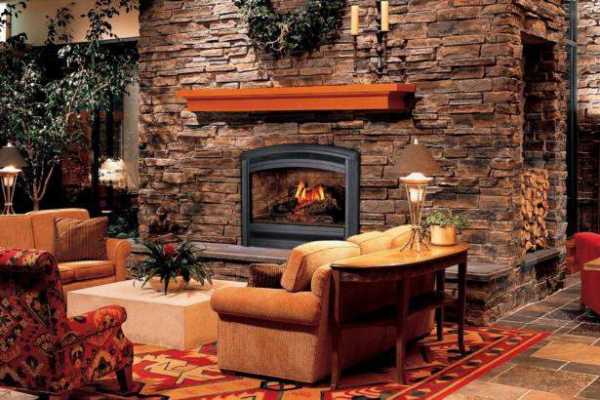 Камин в гостиной в стиле рустик