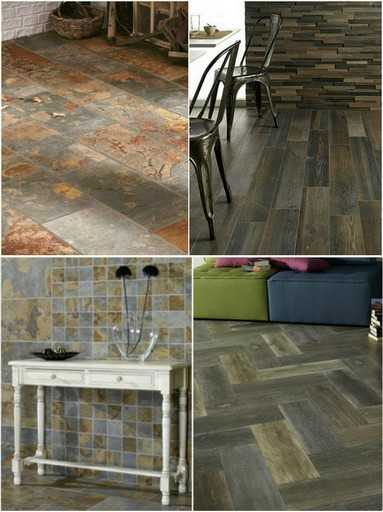 Как правило, используется доска — грубая и естественная на вид либо обработанная, в том числе глянцевая, тонированная. Уместно будет использование плетеного ковролина, к примеру, джутового, сезалевого, керамическая плитка, которая хорошо имитирует фактуру или цвет дерева, ржавых поверхностей, старого камня.