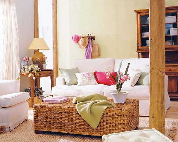 Мебель в светлой гостиной в стиле рустик