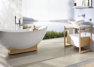 Конечно, можно выбрать не менее популярное дерево, сантехника из этого материала выглядит роскошно, однако, выбрать ванну в качественном исполнении достаточно сложно. Безусловно, она проходит всю необходимую обработку, выносит перемену температур и внешние воздействия, кроме того, она более экологична, поскольку изготавливается исключительно из натурального сырья. При всех ее плюсах, деревянная ванна так же требует к себе усиленного внимания и достойного ухода, есть у нее и особенности в эксплуатации. Для любителей понежиться в ванне каждый день она уже не подойдет, использовать для этих целей ее желательно не чаще 3-х раз в неделю. Да и ценовая политика у таких моделей далеко выше среднего уровня, поэтому дерево лучше всего использовать для отделки.