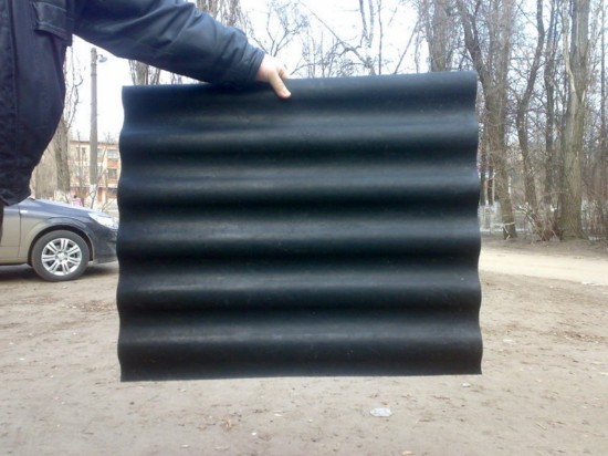 Такой материал обладает большим количеством достоинств. Следует отметить, что резиновый шифер производят из особого сорта резины, к которому добавляется стекловолокно.