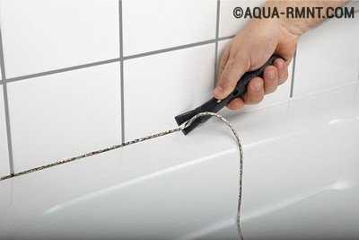 Попытка грубо оторвать герметик приведет к утрате кусков основания, которые будут вырваны вместе с покрытием. Сильно нажимать на режущую поверхность так же не следует, поскольку можно легко повредить поверхность ванны. Очень хорошо использовать кисточку, которая пригодится для сметания обрезков. После проведения процедуры остатки герметика удаляются с помощью металлической жесткой мочалки или любого абразивного средства.