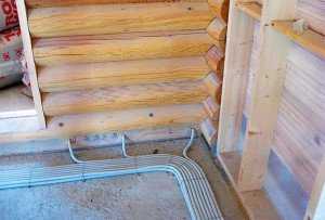 Образовались щели между рядами бруса в несколько сантиметров. Пришлось трубы вырезать и делали электропроводку открытым способом.