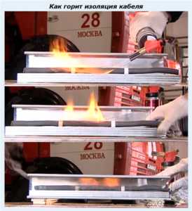 Изоляционный слой в этой конструкции при контакте с пламенем процесс горения не распространяет, но он под длительным воздействием высокой температуры может изменяться — плавиться. А это приводит к короткому замыканию и дальнейшему развитию пожара.