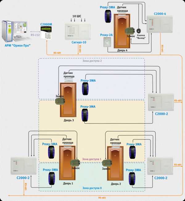 Чтобы был понятен весь процесс проектирования СКУД, рассмотрим все его этапы на конкретном примере. Допустим, вам необходима система, включающая в себя точки доступа и одно- и двусторонними проходами, датчики, доводчики, замки и другого исполнительного оборудования, работающего по команде с контроллера СКУД.