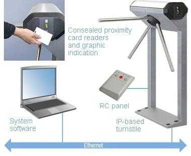 Система контроля доступа позволяет организовать проход сотрудников на охраняемый объект с помощью проксимити-карт (бесконтактных карт) и биометрических считывателей (считыватели отпечатка пальцев), а также обеспечить доступ сотрудников на предприятие или в офис через двери, турникеты, шлагбаумы и калитки.