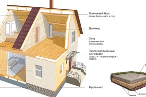 Главной особенностью таких зданий принято считать наличие жесткого каркаса, который гарантирует долговечность и прочность всей конструкции. Стены в каркасно-щитовом доме исполняют роль ограждающей конструкции. Щит делают из листов ОСП, пространство между внутренним и наружным листом ОСП заполняется утеплителем из пенополистерола.