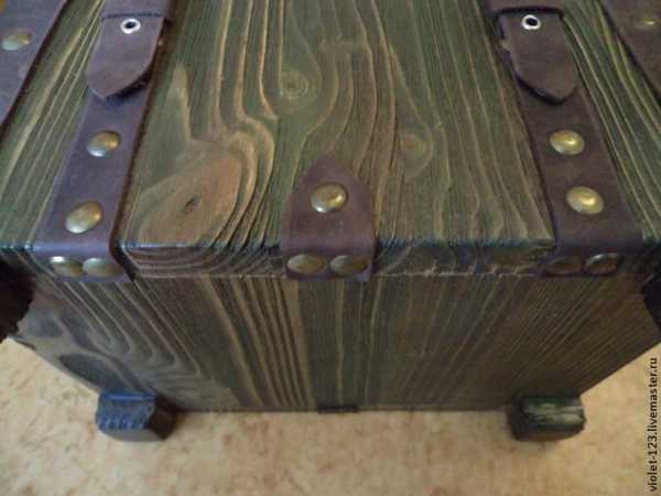 Украсьте сундук своими руками. Например, набейте понизу железные уголки. Интересно на декоративном сундуке смотрятся кожаные полоски, прибитые с помощью гвоздей с крупными шляпками. Наконец, ко дну крепятся ножки.