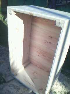 Далее обшиваем досками стенки сундука. Обратите внимание на разметку после первой доски - там в дальнейшем необходимо сделать распил, это будет боковина крышки.