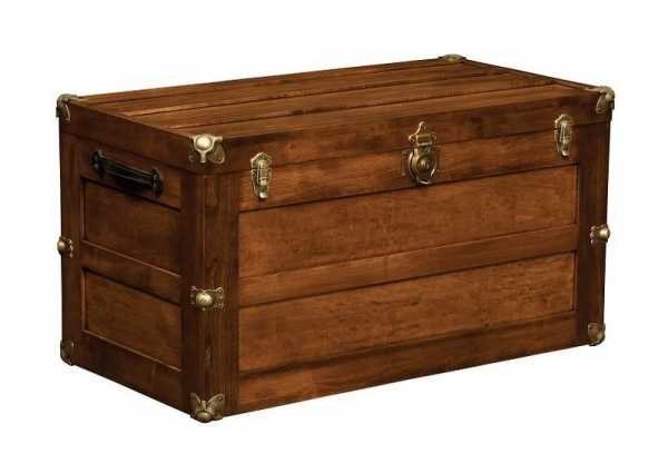 Выбрав натуральное дерево в качестве материала для изготовления сундука своими руками, вы сохраните дух этой колоритной вещицы из прошлого, благодаря чему домашняя обстановка приобретет легкий налет элитарности. Для создания короба вам понадобятся планки из массива доступных в нашем регионе дуба, ольхи или ясеня, хотя самым мало-затратным вариантом будет мебель из сосны. Но учтите, что использование этого капризного хвойного дерева, склонного к набуханию от малейших признаков влаги, приведет к образованию щелей и быстрой потере «товарного вида» деревянного сундука.