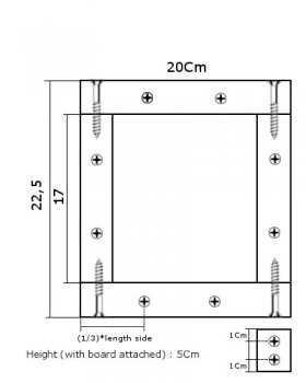 Для изготовления базы вырежьте четыре бруска и основную пластину прямоугольной формы. Бруски приложите к краям формы, подогнав их по длине, и закрепите всю конструкцию струбцинами. На заготовке отметьте расположение саморезов карандашом, отступив от края на 1 см. Просверлите отверстия. Смажьте места крепления брусков с основой столярным клеем, вновь зажмите струбцинами и прикрутите все это саморезами. После полного высыхания клея струбцины снимите и при необходимости базу зашкурьте.