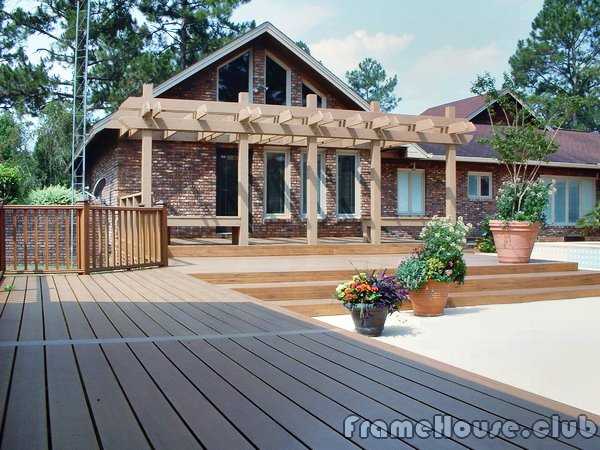 Для возведения террасы своими руками искусственны материал, изготовленный на основе древесно-полимерного композита, является более предпочтительным, особенно если постройка будет открытой, в том числе и при воздействия влаги и солнца. Производимая из него террасная доска или декинг обладают преимуществами древесины, но лишены ее недостатков. Кроме того, из древесно-полимерного композита можно приобрести изделия не только для настила пола, но и для устройства лаг (брус) или отделки (различные декоративные элементы).