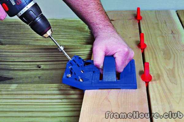 Значительно быстрее и аккуратнее будет происходить постройка веранды своими руками, а также настил пола летней открытой площадки, если для укладки террасной доски приобрести специальный инструмент – приспособление для монтажа Kreg Deck Jig с помощью которого сборка не займет много времени, даже если ее будет выполнять новичок.