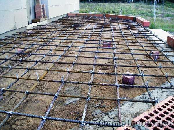 Обязательно нужно связать фундаменты террасы и дома. В случае с такой постройкой для этого будет достаточно вбить стержни арматуры в заранее просверленные отверстия.