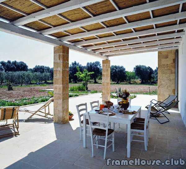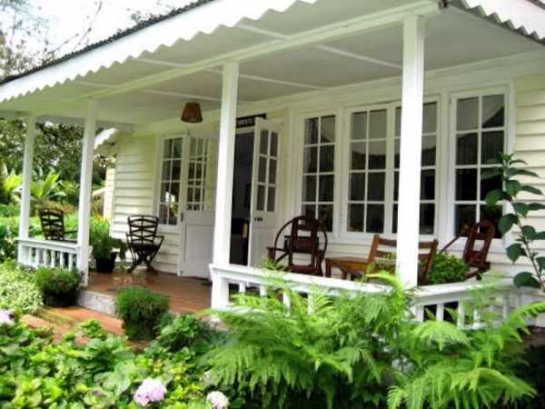 Декорируйте проемы шпалерами, солнцезащитными маркизами или легкими полотняными занавесями. Внутри пристройку украсьте большими цветочными вазонами, и обставьте ее легкой садовой мебелью.