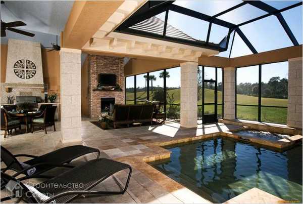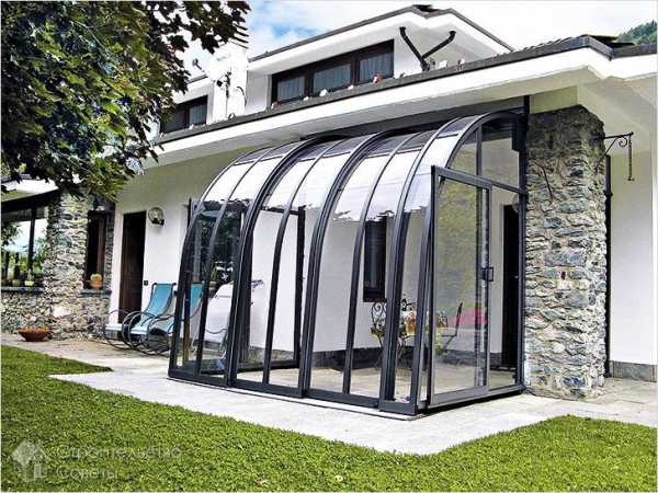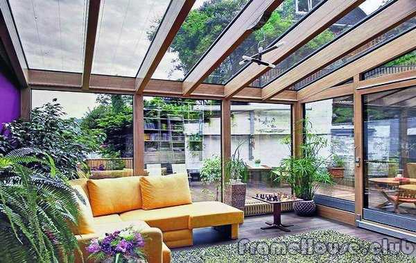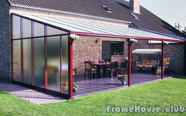 Закрытые – всесезонный вариант. Как плавило, имеет полное оснащение для комфортного отдыха в любое время года. Но глухие стены обычно отсутствуют – вместо них устанавливаются большие оконные проемы, пропускающие в помещение большое количество света. Исключение только одно – стена дома, к которому она пристроена. Крыша может быть любой, даже утепленной, но наиболее популярными являются светопрозрачные конструкции или, как минимум, установка в центре кровли фонаря, что позволяет максимально полностью использовать дневной свет.