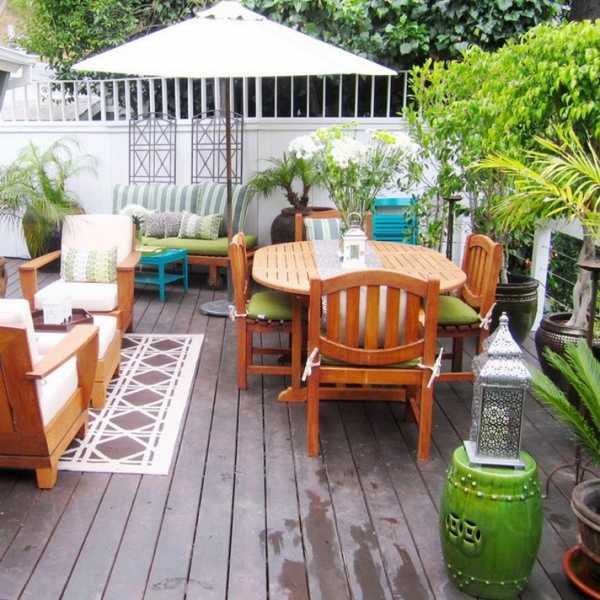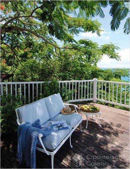 Украшается помост растениями в горшках, светильниками или вазонами с цветами по вашему вкусу. Даже плетеная или кованая мебель в едином стиле может стать не просто необходимостью, но и настоящей изюминкой вашей террасы.