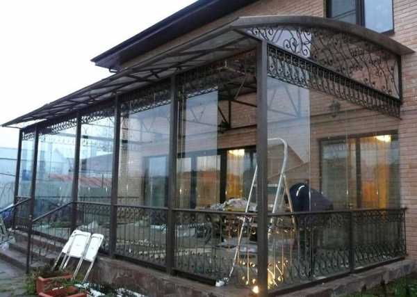 Низкая обширная терраса, крытая сотовым поликарбонатом