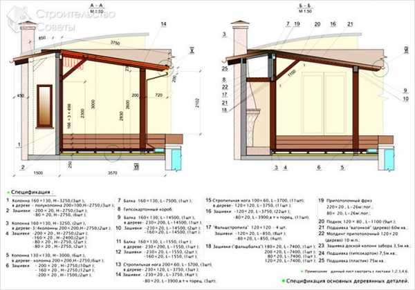 Перед началом возведения пристройки нужно определиться с ее основными элементами. Любая открытая веранда будет состоять из: