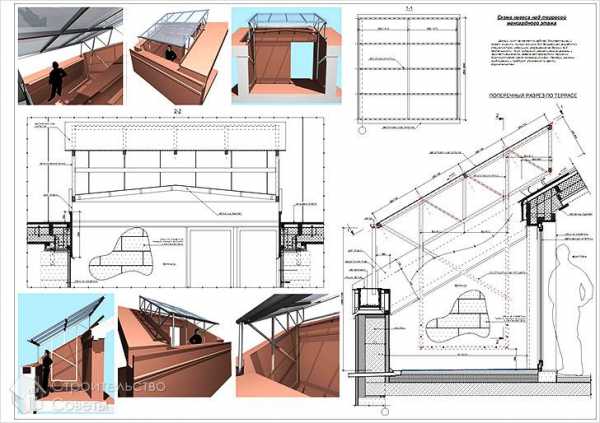 Вот по такой технологии происходит монтаж террасы из поликарбоната к дому. Следуя простым советам и рекомендациям, мы уверены, что вы справитесь с поставленной перед вами задачей. Также в дополнение ко всему сказанному рекомендуем вам ознакомиться с видео и чертежами конструкции террасы.