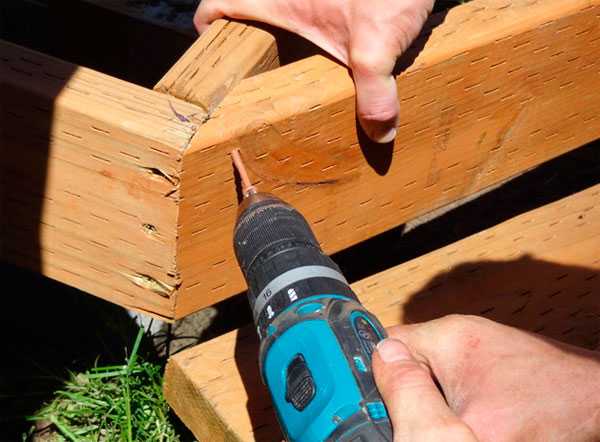 Для сооружения вертикального каркаса террасы используют лиственничные или дубовые брусья сечением 100 на 100 мм. Предварительно такие брусья обрабатывают фунгицидом, пропитывают водоотталкивающим составом и зачищают наждачной бумагой от задиров и заноз.