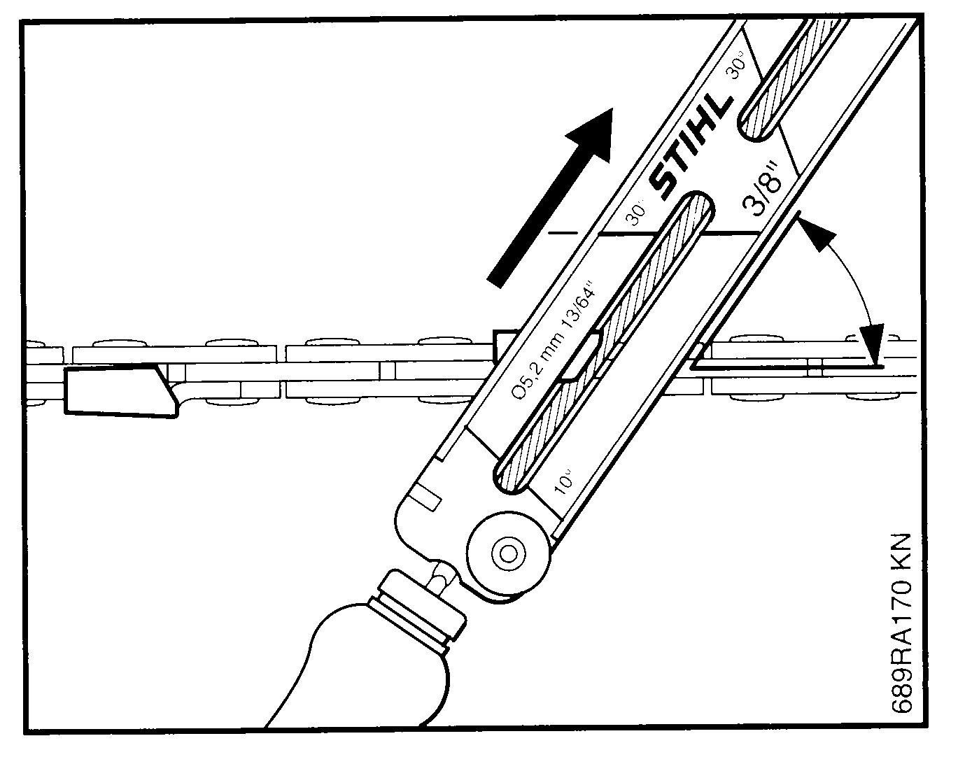 Пильные цепи STIHL затачиваются с углом заточки 30°. Исключениями являются пильные цепи для продольной распиловки с углом заточки 10°. Пильные цепи для продольной распиловки в обозночении имеют "X".