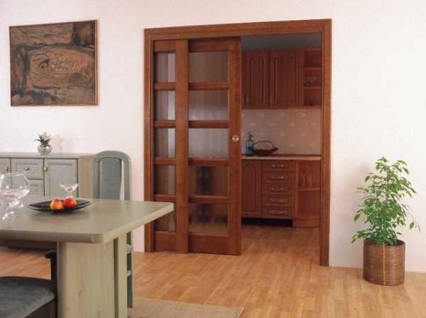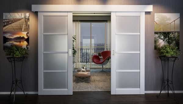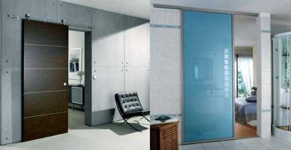 Подобный вид дверной раздвижной конструкции будет стоить намного дороже обычных подвесных дверей, так как установка практически соответственна возведению новой стены.