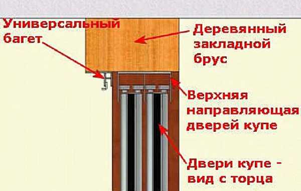 Внимание! Если дверь купе будет устанавливаться на проем в гипсокартонной перегородке, над ним в процессе её возведения необходимо установить закладную из бруса.