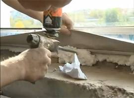 После установки подоконника зазор между ним и оконным блоком заполняется герметиком. Ширина слоя герметика не должна быть менее 3 мм. После этого подоконник притягивается шурупами. Излишки удаляются мягким шпателем. Пока пенный утеплитель не затвердел устанавливают стеклопакеты, чтобы обеспечить дополнительную жесткость конструкции.