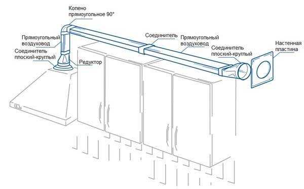 Вытяжки для кухни с отводом в вентиляцию: схемы, правила монтажа