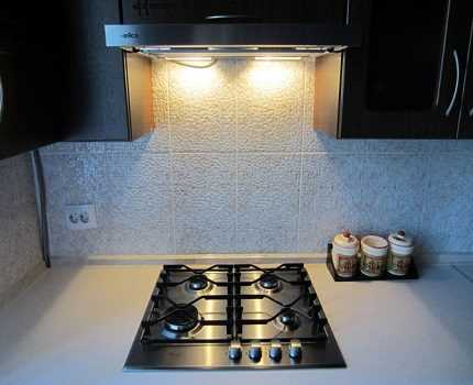 Подсветка может иметь вид светодиодной ленты или отдельных лампочекКак правильно выбрать и купить вытяжки для кухни: фото и цены от разных производителей