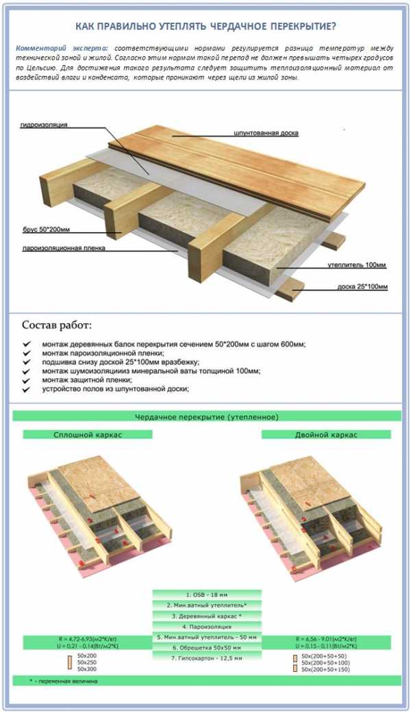 Утепление чердачного перекрытия по деревянным балкам и по железобетонной плите