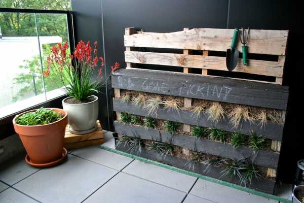 Вместительная грядка без сорняков, при этом занимающая минимум места – мечта любой хозяйки. Однако даже такое прихотливое желание исполнимо. Изготовленные вертикальные грядки своими руками займут во дворе маленькую площадь, а высадить на них можно огромное количество растений. Использование вертикальных грядок популярно при выращивании цветов или клубники. Можно, конечно, и другие растения высадить, но надо всегда просчитывать конечный результат. Если говорить о положительной стороне вертикального выращивания насаждений, то они следующие: Внимание! Многолетние растения на вертикальных грядках плохо переносят морозы. Это связано с полным промерзанием почвы. Под клубнику и другие многолетние растения изготовляют небольшие секции, чтобы на зиму их легко было заносить в сарай. Если говорить о недостатках, то отсутствие прямого контакта с грунтом заканчивается быстрым истощением почвы внутри контейнера. Для достижения хороших результатов растения приходится чаще подкармливать. То же самое происходит и с поливом. Важно! Чтобы грунт внутри контейнеров оставался дольше влажным, его размешивают с гидрогелем. Это вещество способно долго удерживать влагу. Месторасположение определяют, руководствуясь характеристиками растущих на ней растений. Допустим, клубника любит тепло, свет и хороший полив. Контейнеры с клубникой лучше расположить с южной стороны, чтобы тень деревьев не закрывал ей свет. При сильном солнце насаждения клубники притеняют козырьком из ДВП или поликарбоната. Если на вертикальной конструкции растут декоративные растения, она может быть установлена с западной, восточной и даже северной стороны. Все зависит от того, где растениям комфортней расти. Внимание! На клубнику негативно воздействует цветущая черемуха и плодовые деревья. Этот факт надо учесть при выборе места для вертикальной грядки. Вертикальные грядки лучше всего заполнять покупным грунтом. Он содержит все необходимые растениям микроэлементы. Если решено взять грунт с огорода, то предварительно его смешивают с органикой примерно в соотношении 2:1. Важно учесть, что для клубники нежелательно набирать почву с участка, где перед этим росла земляника, розы или ежевика. Подготовкой почвосмеси занимаются за две недели до ее засыпки в контейнеры. Совет! При отсутствии органики альтернативой может послужить навоз или компост. Здесь можно увидеть на видео вертикальные грядки своими руками для клубники: Для изготовления вертикальных грядок в домашнем хозяйстве можно использовать любой подходящий материал, главное, чтобы получились контейнеры, способные удерживать грунт. Деревянные поддоны, используемые для складирования продукции, представляют готовое решение вертикальной грядки. На фото можно увидеть, как выглядит цветник, обустроенный на такой конструкции. Однако при выборе поддона важно обратить внимание на его маркировку. Для обеззараживания древесины и продления ей срока службы на заводе паллеты подвергаются температурной и химической обработке. Для цветов и других декоративных растений подойдет поддон с любой маркировкой. Если предполагается выращивание клубники или других культур, приносящих урожай, то подойдут только паллеты, прошедшие термическую обработку. Давайте рассмотрим, как сделать вертикальную грядку из деревянного по